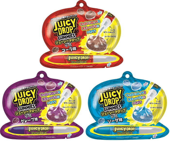 ●「ジューシードロップグミ」と比べてシロップの酸味をアップさせたより刺激的な味わいを楽しめます。