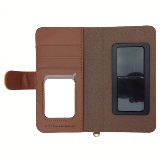 3つ目に紹介するのは、こちらの手帳型スマホカバーです。黄色のデザインがとっても目を引きますね。チャーリーブラウンが好きな方にとってもおすすめです♪サイズは、185×130×15mmです。