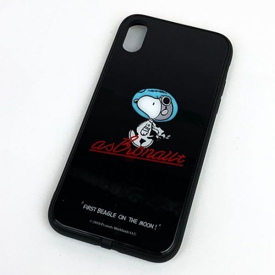 1つ目におすすめするスマホカバーは、こちらです。宇宙服をきたスヌーピーがプリントされていますね♪黒色の背景色にマッチしています。強化ガラス+TPUで作られているため、とっても強い耐久性があるんです。
