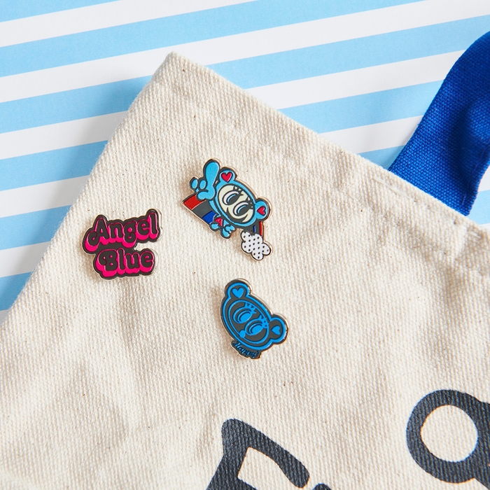「ANGEL BLUE」のナカムラくんとロゴを使用したピンバッジ3点のセットです。