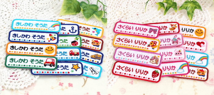 保育園に通う小さなお子さま向けのイラスト入りから、小学生でも使いやすお名前だけのシンプルデザインまで、お好みにあったものがきっと見つかります。