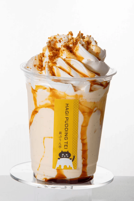 萩ぷりん亭の人気No.1プリンをドリンクでも。生クリームの上からカラメルソースをかけ、さらにクラッシュしたカラメルをトッピング。バニラビーンズが香る、萩ぷりん亭のオリジナルドリンクです。