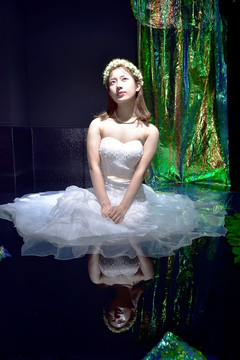 なんと撮影者も一緒に深度15cmのプールに入ることが可能で、背景や小道具のセッティング等にもこだわった、ファンタジーな作品撮りを堪能できる。