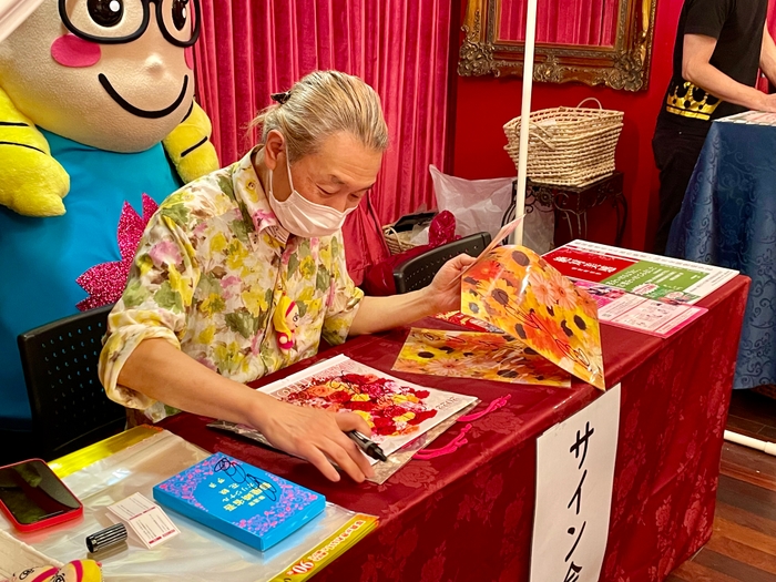 フラワーロス解消のための今回のプロジェクトでは、華道家の假屋崎省吾さんのご賛同をいただき、假屋崎さんが主催した華道の展覧会に、スマイルフラワープロジェクトが農家さん応援として専門的に取り扱っている「規格外のガーベラ」を会場のさまざまなところに飾っていただきました。