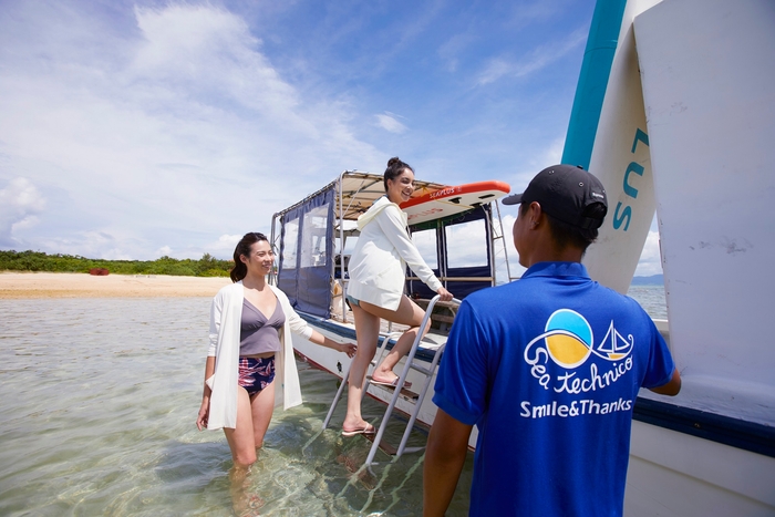 ホテル隣接のビーチからプライベート船で「幻の島」へ