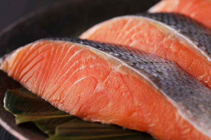 鮭の皮は、コラーゲンが豊富です、身のように食べやすくないので、細かく切って一緒に与えてください。