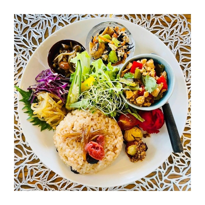 借りぐらし喫茶では、たまにはお野菜まみれになっていただきたいと考え、全て植物性にこだわりました。ヴィーガンにも対応しています。ここでの食事をきっかけにご自身の健康や地球を感じていただければ幸いです。