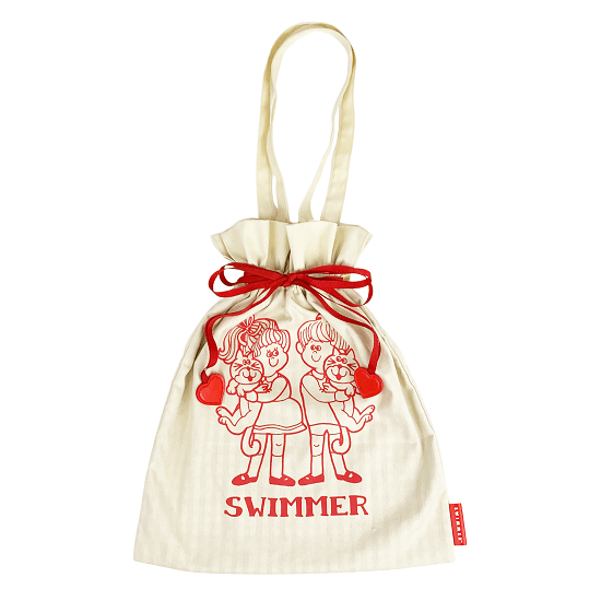 その名の通り巾着のように上部が絞れるトートバックです♡肩ひもが長めなので持ちやすく、紐部分のハートがさりげなく可愛い。そんなトートバックです。