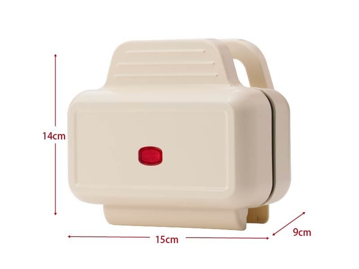 本製品のサイズは約15×14×9cm、重さは800gと2枚焼きに比べて非常にコンパクト。