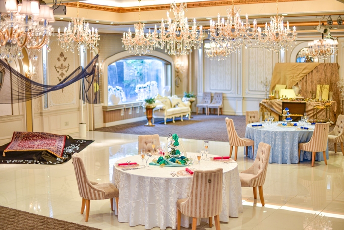 披露宴会場はそれぞれ異なった雰囲気に装飾されているので、さまざまな衣装に合わせて撮影できます。