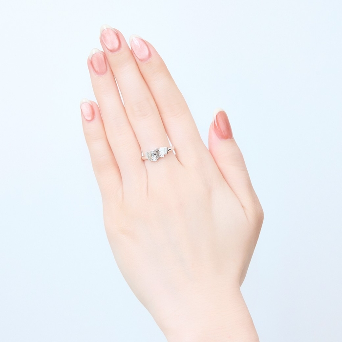 ピンクゴールドカラーで表現したキュートな笑顔のジェリーとイニシャルを組み合わせたウェーブデザイン。ワンポイントのストーンが指元でキラリと輝きます。