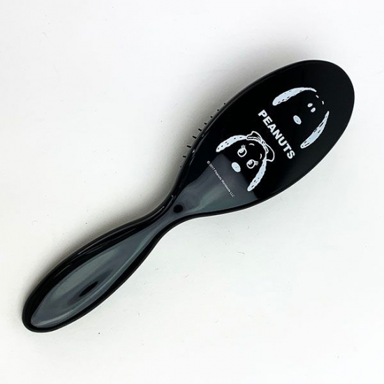 ゴムでまとめる際に便利な、スヌーピーのヘアブラシもご紹介♪シックな黒に、スヌーピーとベルの顔がデザインされています。持ち手も握りやすいフォルムと長さです。