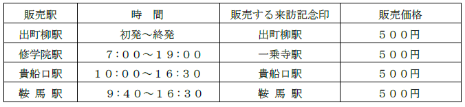 コラボ来訪記念印[八瀬比叡山口駅]×1枚