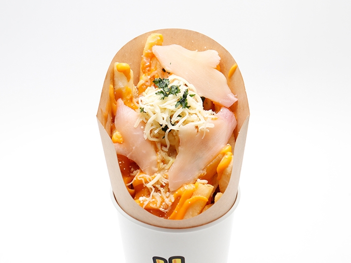濃厚チーズのフライドポテトに岩下の新生姜をトッピング。濃厚でいてさっぱり食べられる、暑い夏にぴったりの一品!