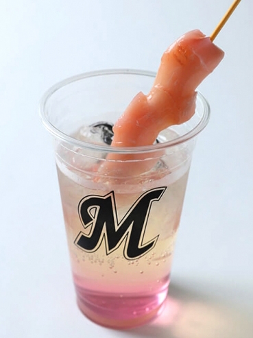 岩下投手と言ったら「岩下の新生姜」! 岩下投手の大好きなハイボールに大好きな岩下の新生姜を丸ごと1本添えました。