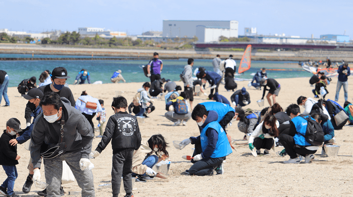 我々が行ったビーチクリーンイベント潮干狩りの前に、みんなで「プラ干狩り」!!では、人ひとりが年間消費するペットボトル200本分が海洋に流入したことを想定して、その海洋に流れた細かなプラスチックごみを回収するのにどれだけ大変なのかを参加頂いた230名の参加者と共に取組みました。結果、ペットボトル200本(約4Kg)を想定して回収に2時間かけて取組みましたが、回収できたこまかなプラスチックごみ、マイクロプラスチックは約1Kgでした。参加者のお子様からは、こまかくなってしまったプラスチックの回収の大変さと、「“使い捨て”は駄目だよね!」と家族で話してくださる場面が数多く生まれました。