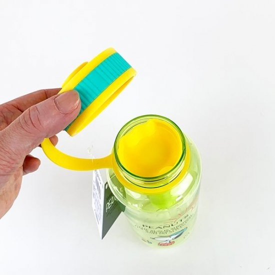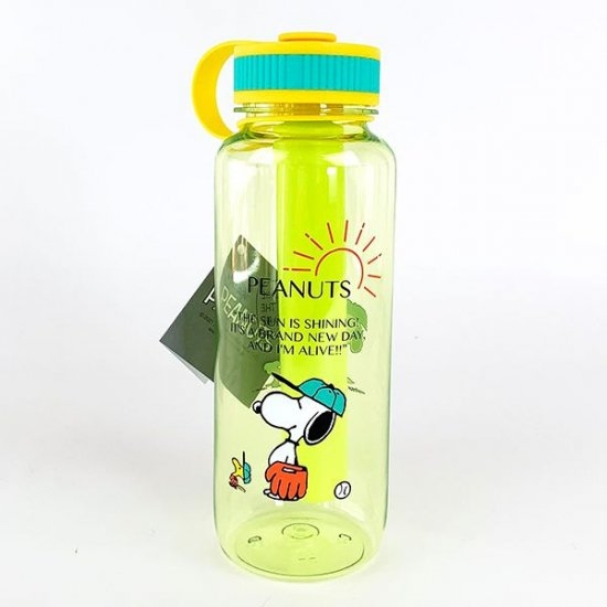 色違いには、イエローのドリンクボトルがあります。こちらのデザインには、野球をするスヌーピー&ウッドストックが描かれていますよ。