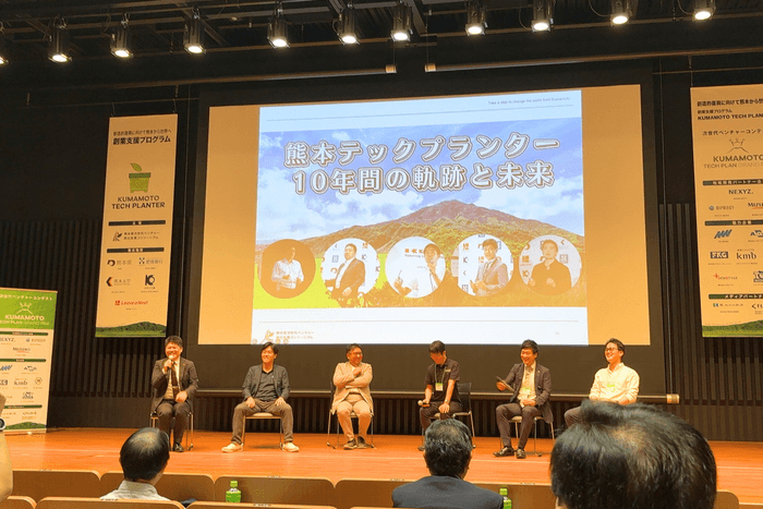 今回のテックプラングランプリでは9社のファイナリストによるピッチの他に、10周年を記念した特別セッションが催され、当社代表を含めた熊本発スタートアップ企業の代表らによるトークセッションが行われました。
